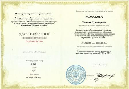 Преподаватели Центра Колоскова Т.Р. и Филина О.Н. прошли обучение как эксперты ЕГЭ и ОГЭ в ГОУ ДПО ТО "ИПК и ПП РО ТО" по программе "Нормативно-правовые аспекты деятельности экспертных комиссий ЕГЭ И ОГЭ" и получили сертификаты. В этом году им предстоит проверять письменные и устные части экзаменов ЕГЭ И ОГЭ по английскому языку. Желаем им успешной работы!