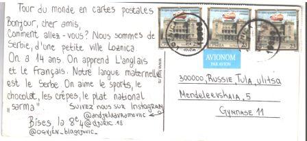 Сегодня мы получили первую весточку от сербских школьников из города Лозница, изучающих французский язык. Спешим ответить на предложение дружбы и сотрудничества!