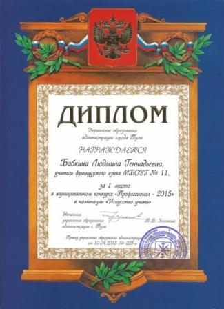 Поздравляем Бабкину Людмилу Геннадьевну - финалиста конкурса педагогов "Профессионал 2015"! Людмила Геннадьевна стала победителем в номинации «Искусство учить».